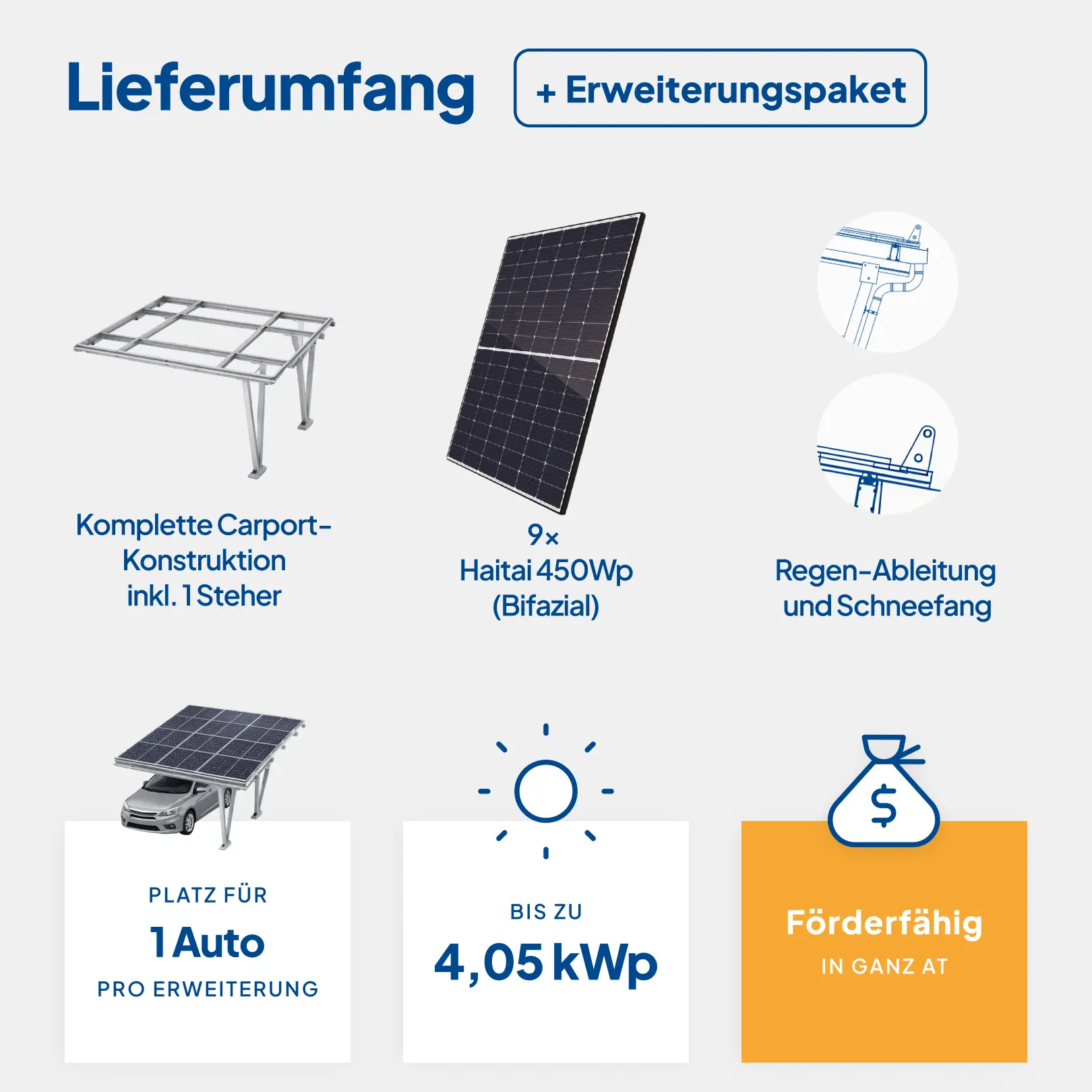 1-PKW-Carport-Erweiterung (á 9 PV-Module = 4,05kWp)